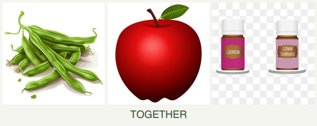 Apples: Planting apples with beans and geraniums is challenging due to differing growth requirements. Apples are perennial trees needing specific soil conditions and ample space, while beans are annuals, and geraniums are typically perennials or annuals depending on the variety.