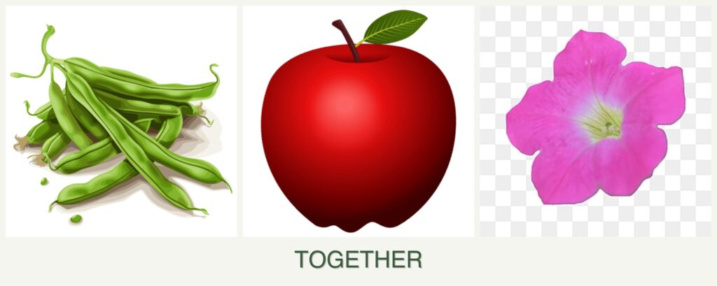 - Growth Requirements: Beans and petunias share similar needs for sunlight and soil but differ in water requirements. Apples require more space and different soil conditions.