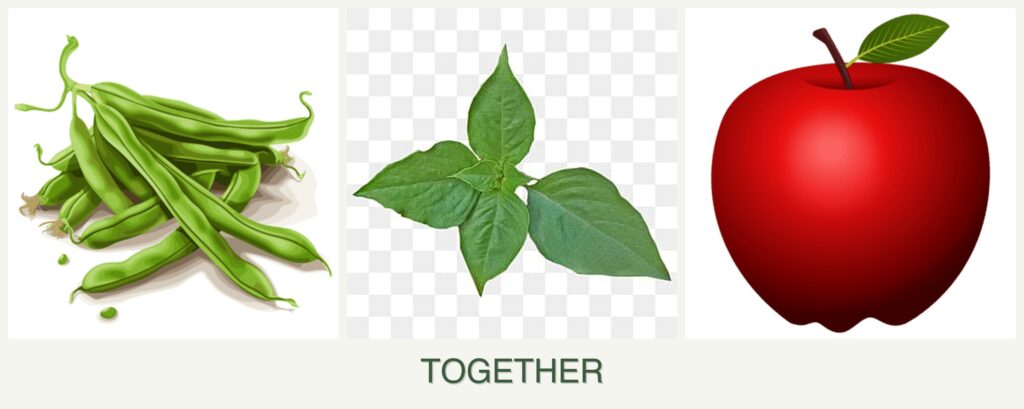 - Growth Requirements: Basil and beans share similar sunlight and water needs, while apples require more space and a different soil structure.