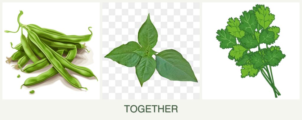- Growth Requirements: Beans, basil, and cilantro thrive in similar conditions, preferring full sun and well-drained soil.