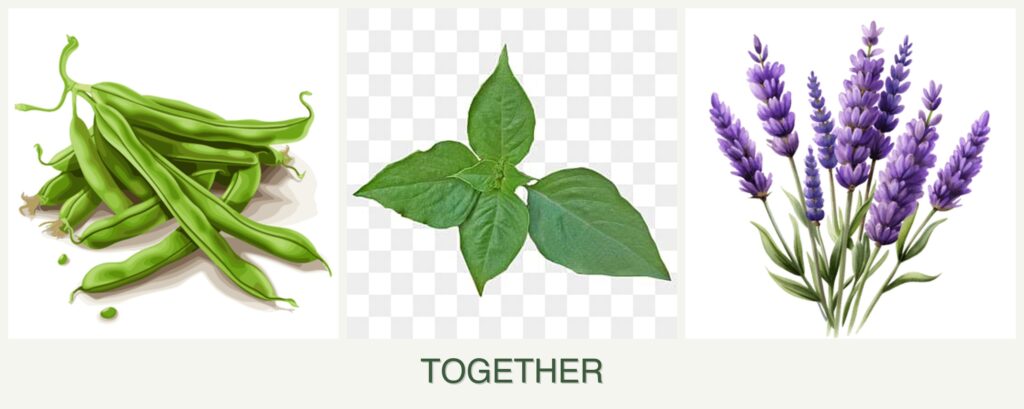 - Nutrient Needs: Beans enrich the soil with nitrogen, benefiting basil but not necessarily lavender, which prefers less fertile soil.