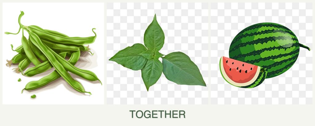 - Nutrient Needs: Beans contribute nitrogen to the soil, benefiting heavy feeders like melons. Basil’s nutrient needs are moderate and compatible with both.