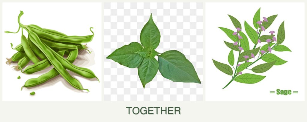 - Growth Requirements: Beans and basil prefer similar conditions, such as full sun and well-drained soil. Sage, however, prefers slightly drier conditions.