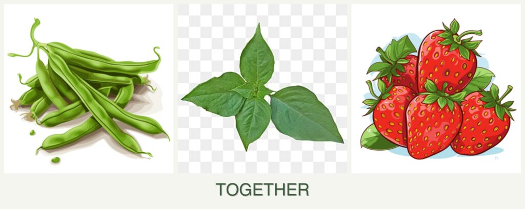 - Improved Growth: Beans fix nitrogen in the soil, benefiting both basil and strawberries.
