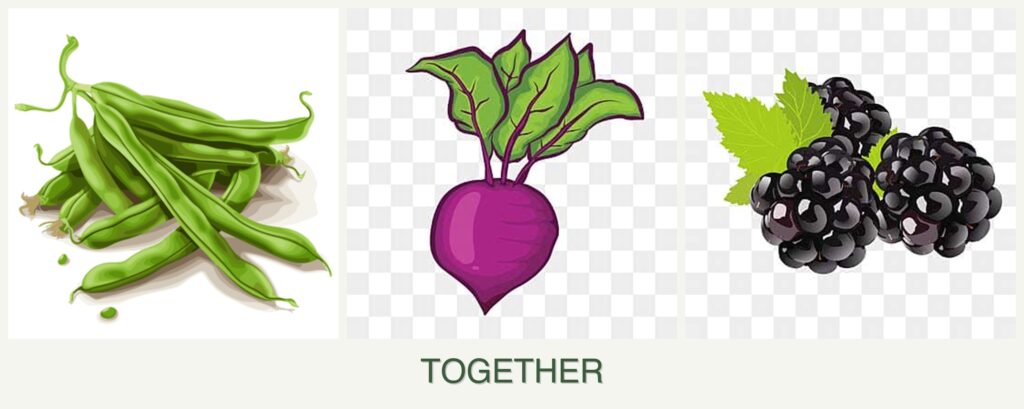 - Nutrient Needs: Beans improve soil nitrogen, benefiting beets. Blackberries have deeper roots that can access nutrients beyond the reach of the other two.