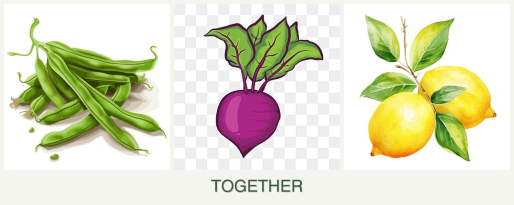 - Nutrient Needs: Beans fix nitrogen in the soil, benefiting beets, but lemons require more potassium, which can lead to nutrient competition.