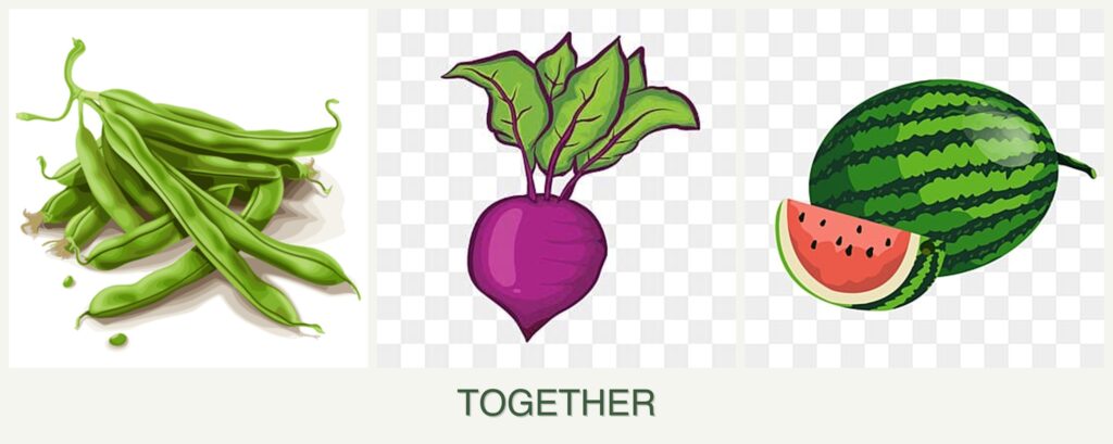 - Watering Needs: Melons need more water than beans and beets.