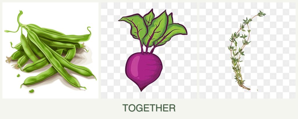 - Timing: Plant beans and beets in spring after the last frost; thyme can be planted simultaneously.