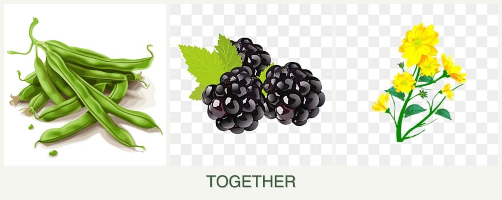 - Nutrient Needs: Beans enrich the soil with nitrogen, benefiting blackberries and calendula.