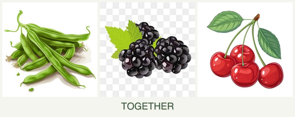- Growth Requirements: Beans, blackberries, and cherries have varying growth needs. Beans fix nitrogen in the soil, benefiting blackberries and cherries, which thrive in nutrient-rich environments.
