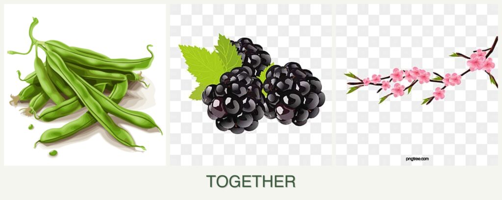 Growth Requirements: Beans are nitrogen-fixing plants, which can enrich the soil for blackberries and peaches. Blackberries and peaches, being perennials, can benefit from this extra nitrogen.