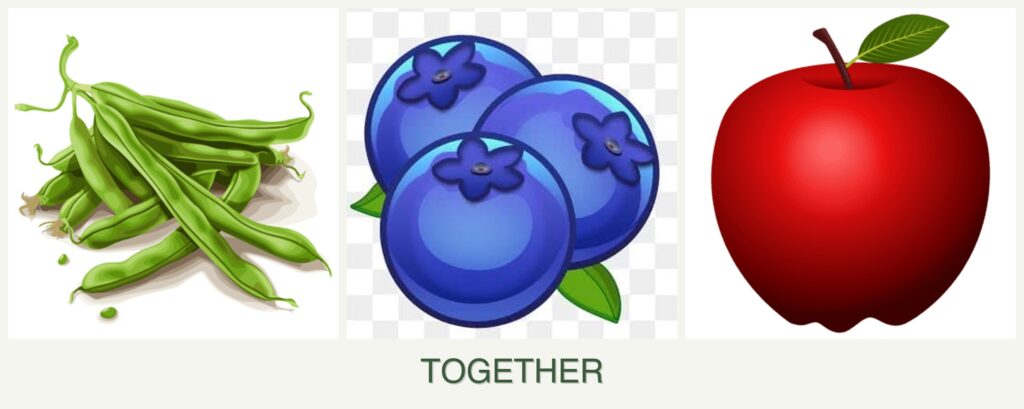 While beans, blueberries, and apples are not ideal companions, there are general benefits to companion planting that can be applied with other suitable plant combinations: