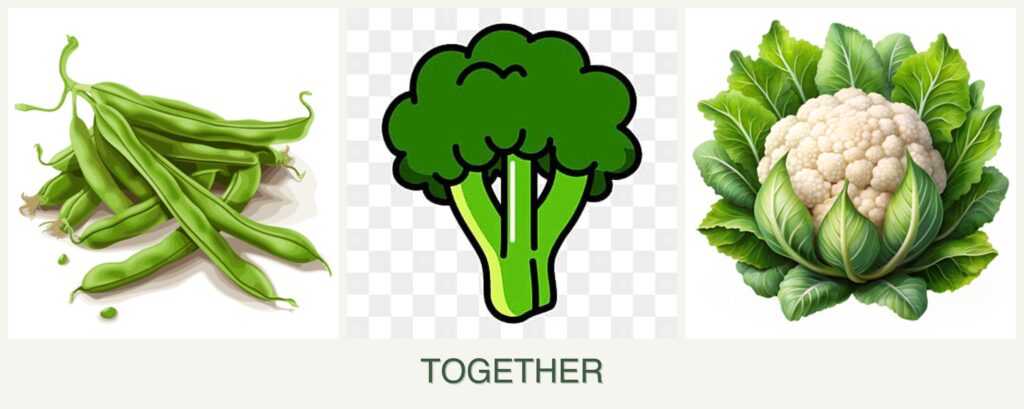 - Nutrient Needs: Beans enrich the soil with nitrogen, which can support the heavy-feeding broccoli and cauliflower.