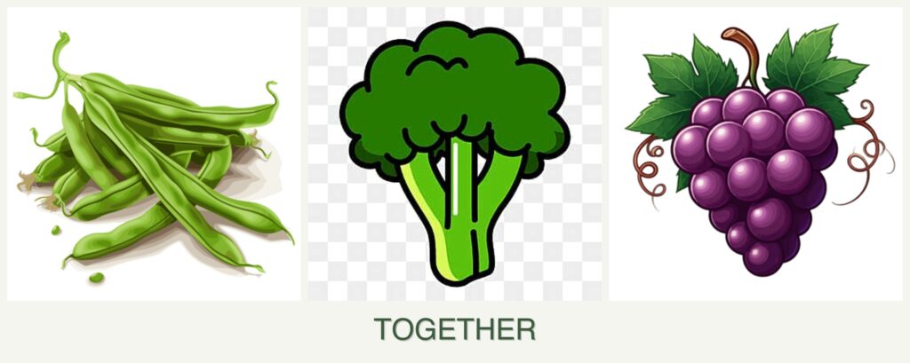 Can you plant beans, broccoli and grapes together?