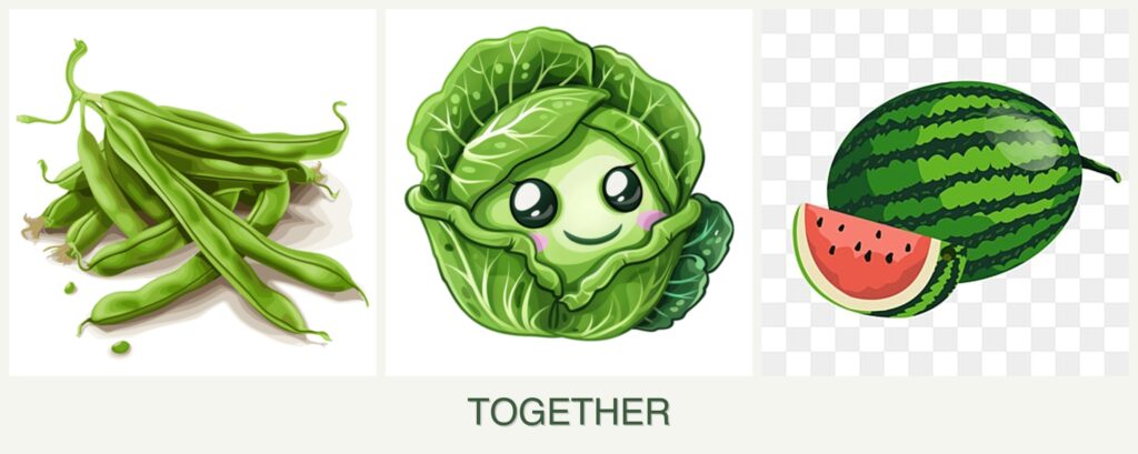 - Growth Requirements: Beans are climbers, cabbage is a leafy green, and melons sprawl along the ground. Their differing growth habits can complement each other if space is managed well.