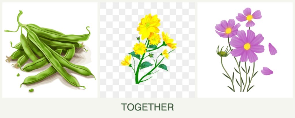 - Improved Growth: Beans fix nitrogen in the soil, which supports the growth of calendula and cosmos.