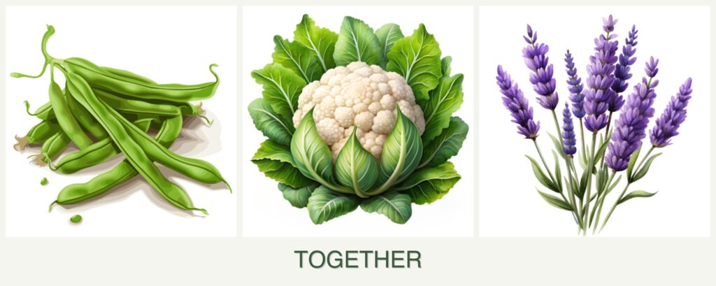 Can you plant beans, cauliflower and lavender together?