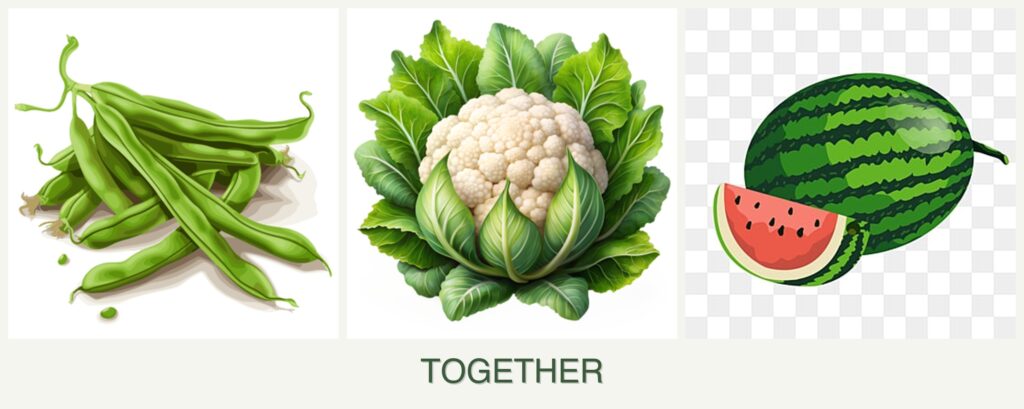 Pest Repellent Properties: Beans can deter some pests that affect melons, while cauliflower can repel certain beetles.