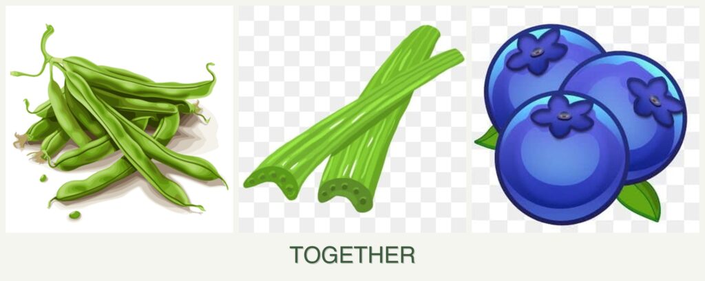 - Nutrient Needs: Beans fix nitrogen in the soil, which can benefit celery but not blueberries, which require a more acidic environment.