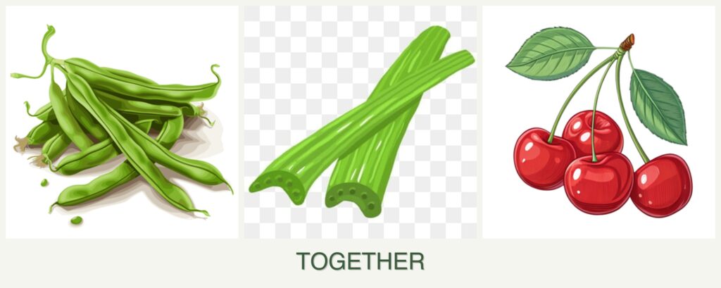 While cherries are best planted separately, the combination of beans and celery offers several benefits: