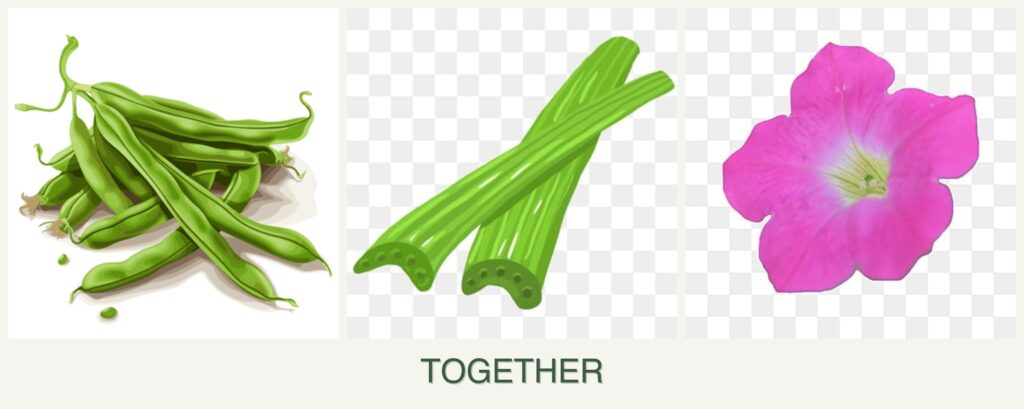 Can you plant beans, celery and petunias together?