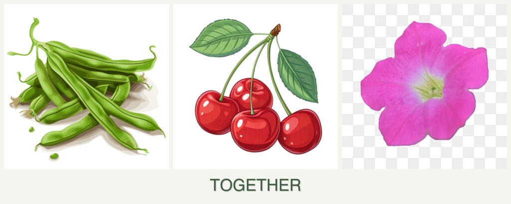- Timing: Plant beans and petunias in spring, cherries in late winter or early spring.