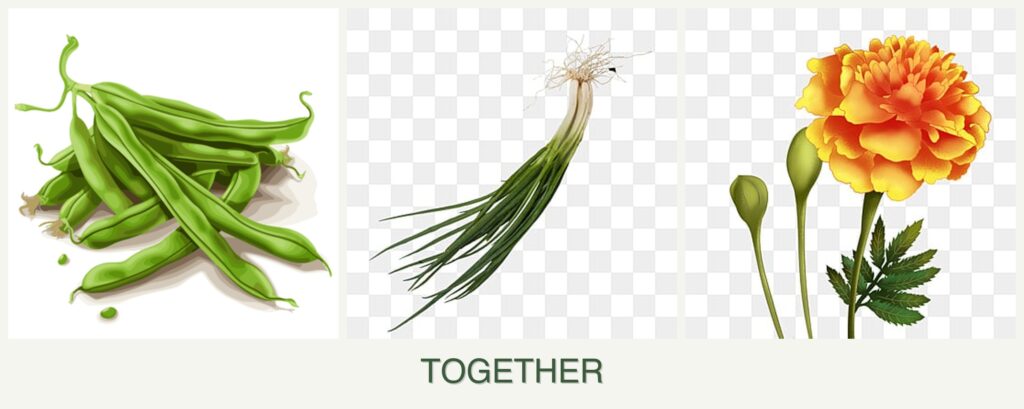 - Improved Flavor and Growth: The nitrogen fixed by beans enhances soil fertility, promoting the growth of chives and marigolds.