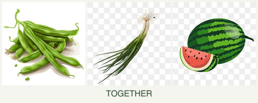 - Different Watering Needs: Melons require more water than beans and chives, so adjust watering accordingly.