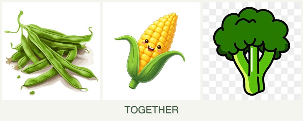 - Growth Requirements: Beans and corn thrive in similar conditions, while broccoli prefers cooler temperatures.