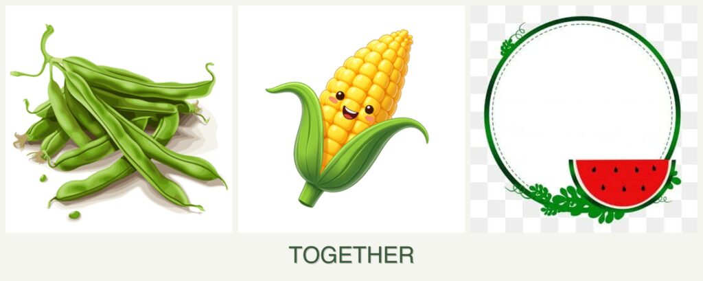 Planting beans, corn, and watermelons together offers numerous benefits: