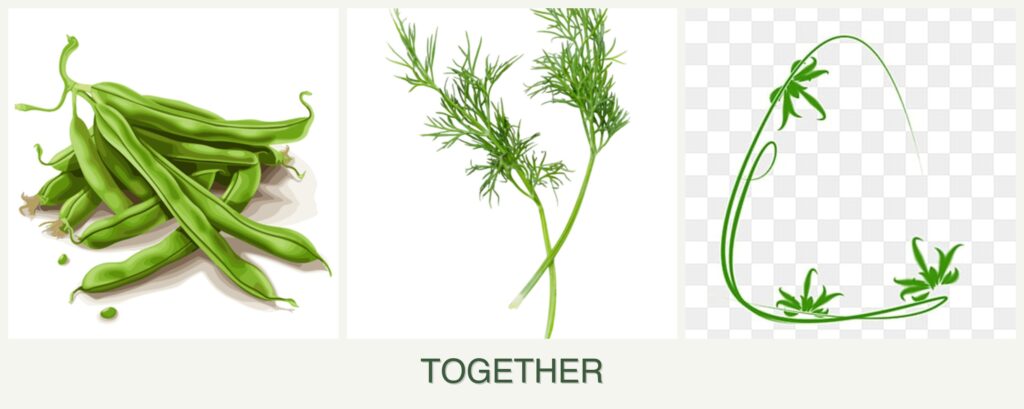 - Pollinator Attraction: Dill’s flowers attract pollinators, increasing the chances of successful bean pollination.
