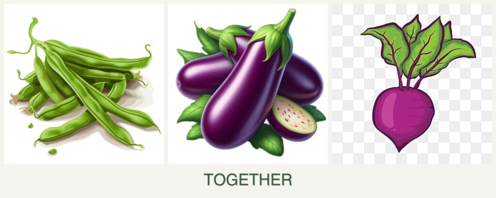 Nutrient Needs: Beans improve soil nitrogen levels, benefiting the nutrient needs of eggplants and beets. However, beets do not fix nitrogen themselves and rely on the soil’s existing nutrients.