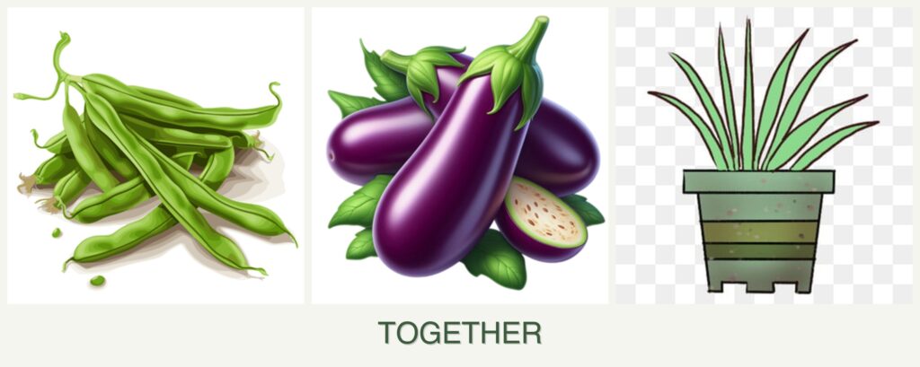 - Harvesting Considerations: Beans require frequent harvesting, which could disturb eggplants if not planted with care.