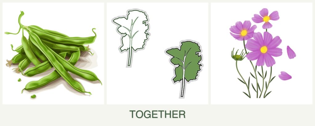 - Pest Control: Cosmos attracts beneficial insects that prey on pests, while kale benefits from the nitrogen fixed by beans.