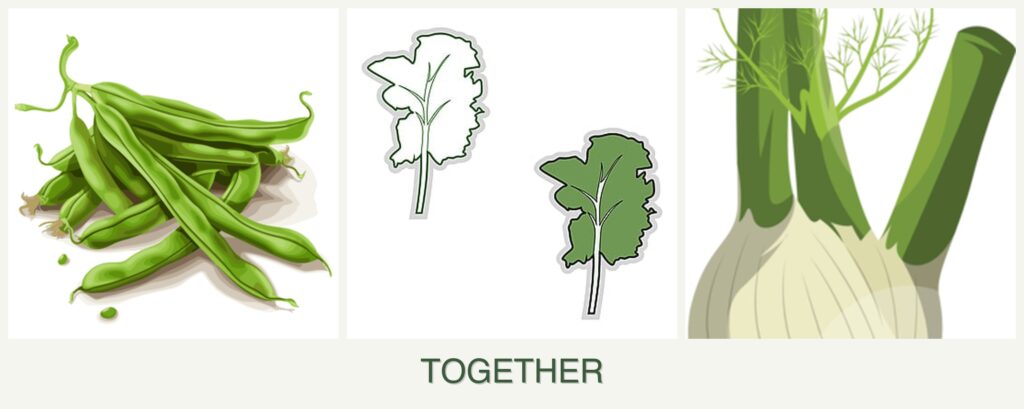 - Nutrient Needs: Beans enrich the soil with nitrogen, benefiting kale, but fennel does not contribute to nutrient sharing.