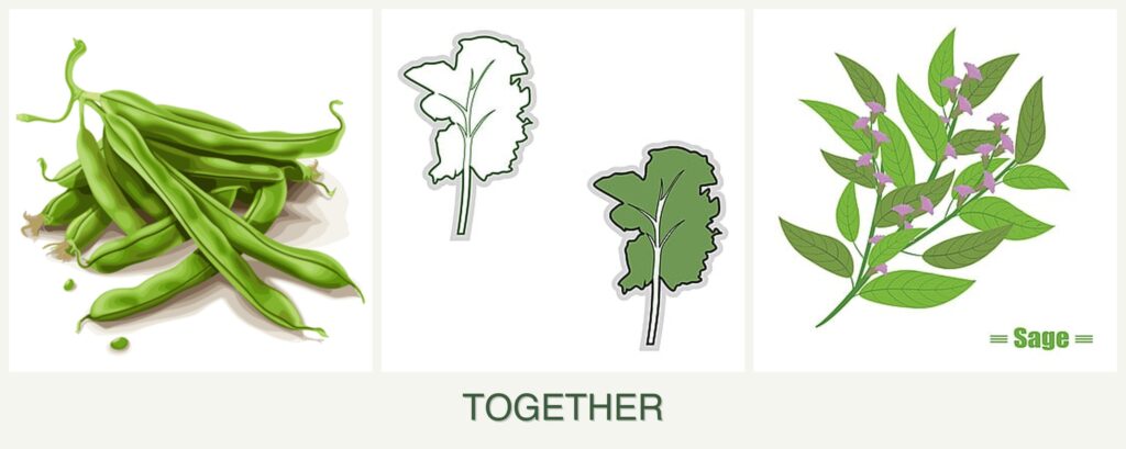 - Nutrient Needs: Beans improve soil nitrogen, benefiting kale. Sage requires less nitrogen, so it won’t compete heavily.