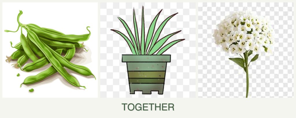 - Nutrient Needs: Beans fix nitrogen in the soil, providing nutrients for lemongrass and alyssum.