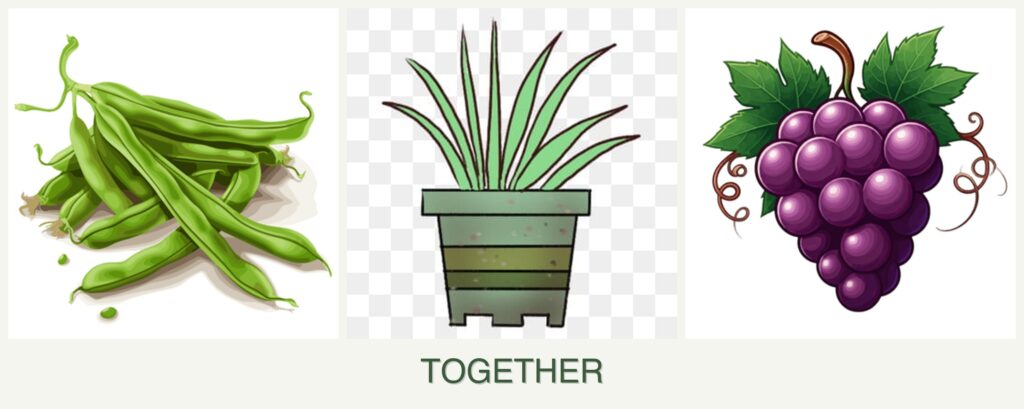 - Competition for Resources: Grapes and beans may compete for sunlight if not properly spaced.