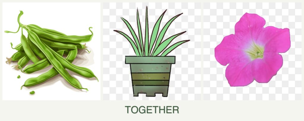- Pollinator Attraction: Petunias attract pollinators, enhancing bean production.