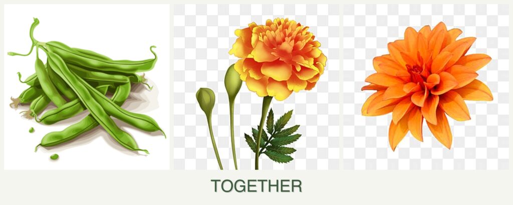 Planting beans, marigolds, and dahlias together offers several advantages: