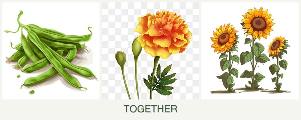 Improved Growth: The nitrogen-fixing ability of beans can enhance sunflower growth, while marigolds improve soil conditions.