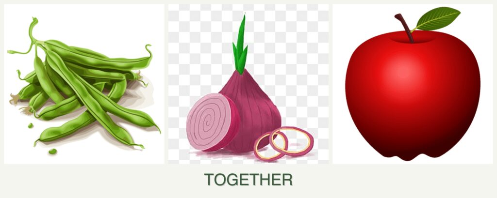 - Improved Growth: Beans can enhance the growth of onions by enriching the soil, though apples benefit less directly.