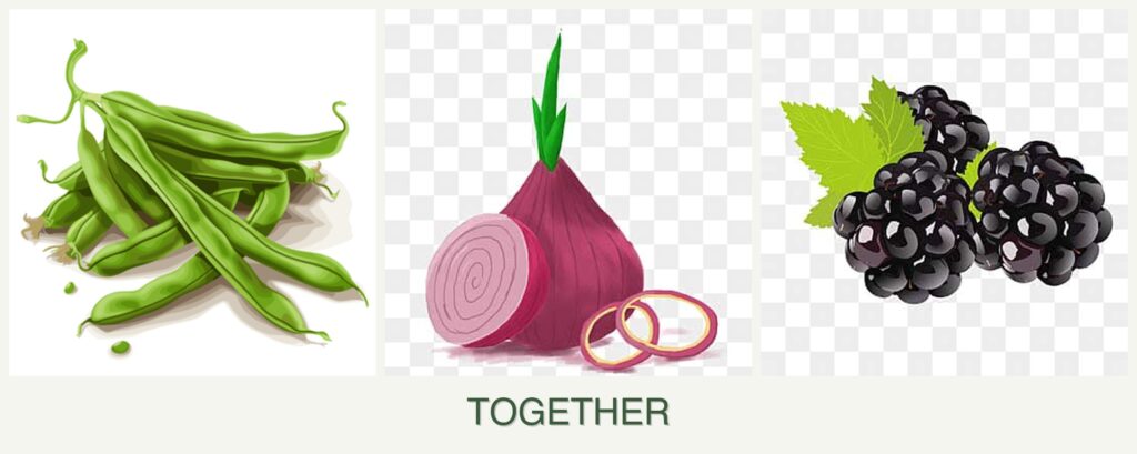 While beans, onions, and blackberries may not be ideal companions, planting beans and onions together can offer several benefits: