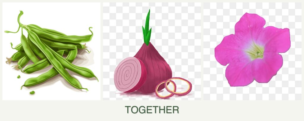 Can you plant beans, onions and petunias together?