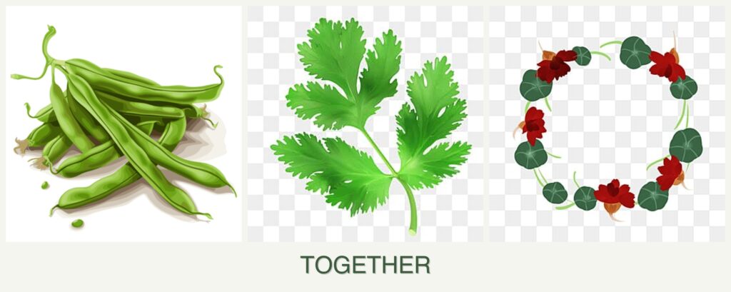 - Pest Control: Nasturtiums attract beneficial insects and repel pests, offering natural protection for beans and parsley.
