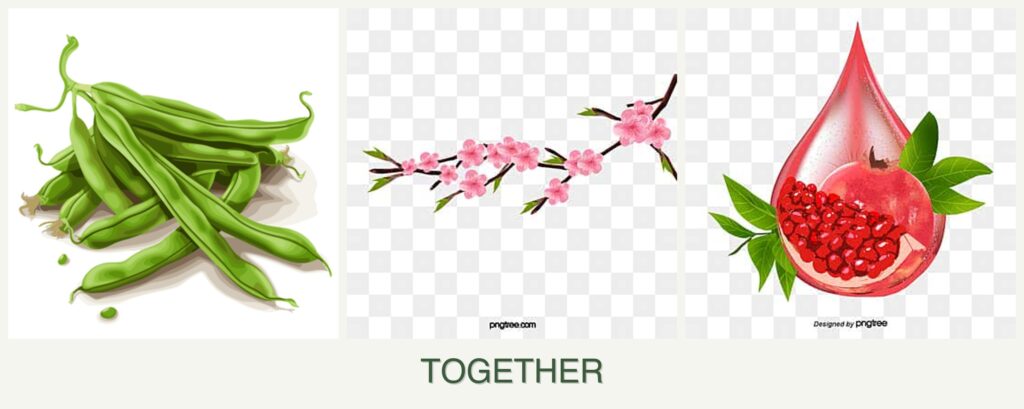 Can you plant beans, peaches and pomegranates together?