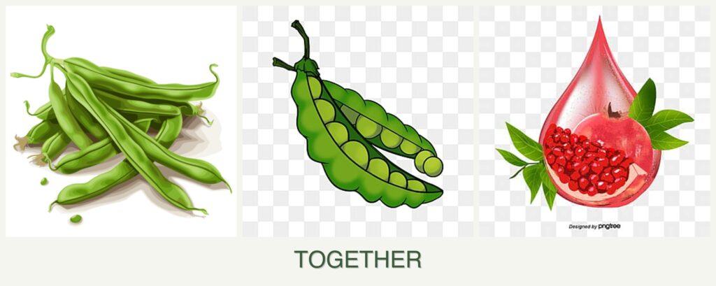 While beans, peas, and pomegranates aren’t ideal companions, planting beans and peas together offers several benefits: