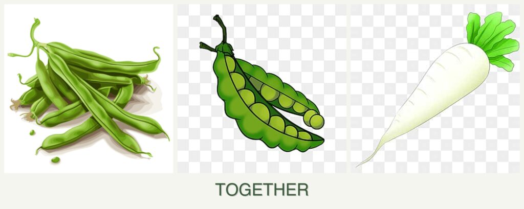 Improved Growth: The nitrogen-fixing ability of beans and peas enhances soil fertility, benefiting radishes.