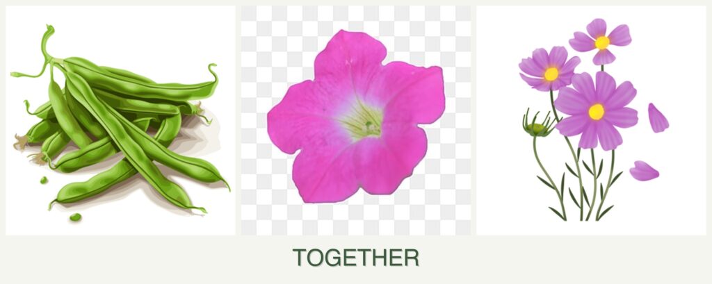 - Pest Control: Petunias deter aphids, a common pest for beans, while cosmos attract beneficial insects.