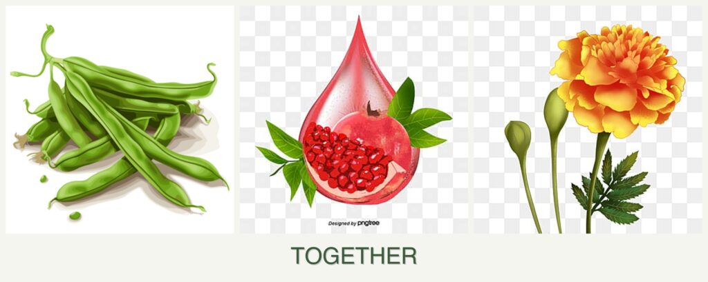 - Pest Repellent Properties: Marigolds are known to repel nematodes and other pests, providing natural protection for beans and pomegranates.